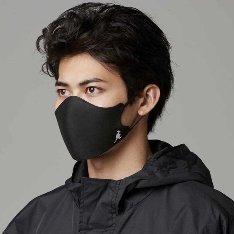 マスクのサイドには、カンゴールのシンボルロゴとレタードロゴをさりげなくプリント。