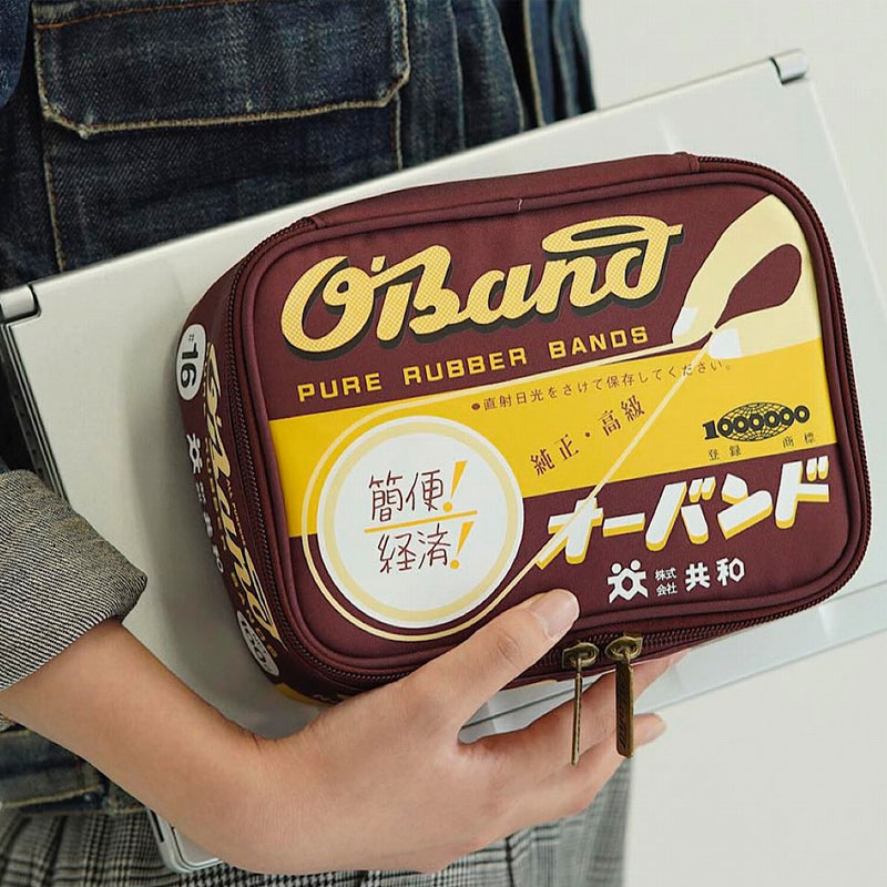 特別付録は、レトロでかわいい「オーバンド」のあの箱そっくりのガジェットポーチです。