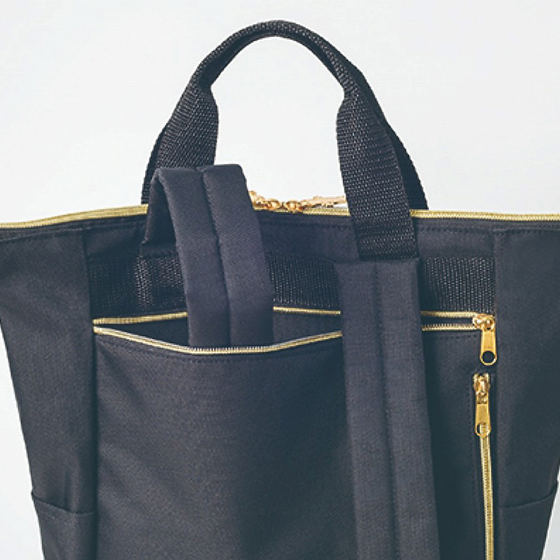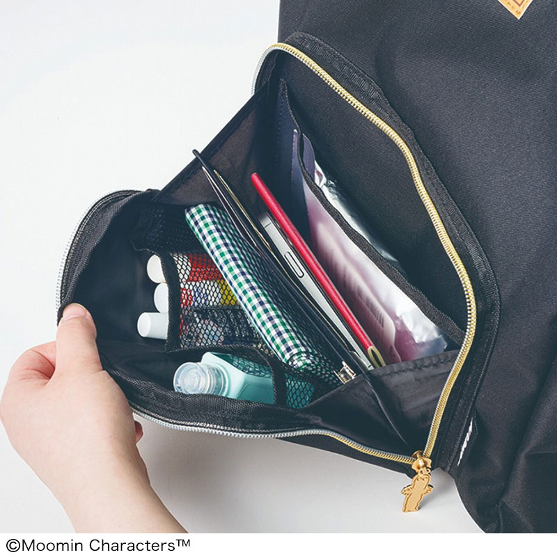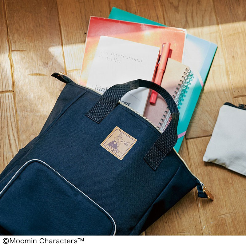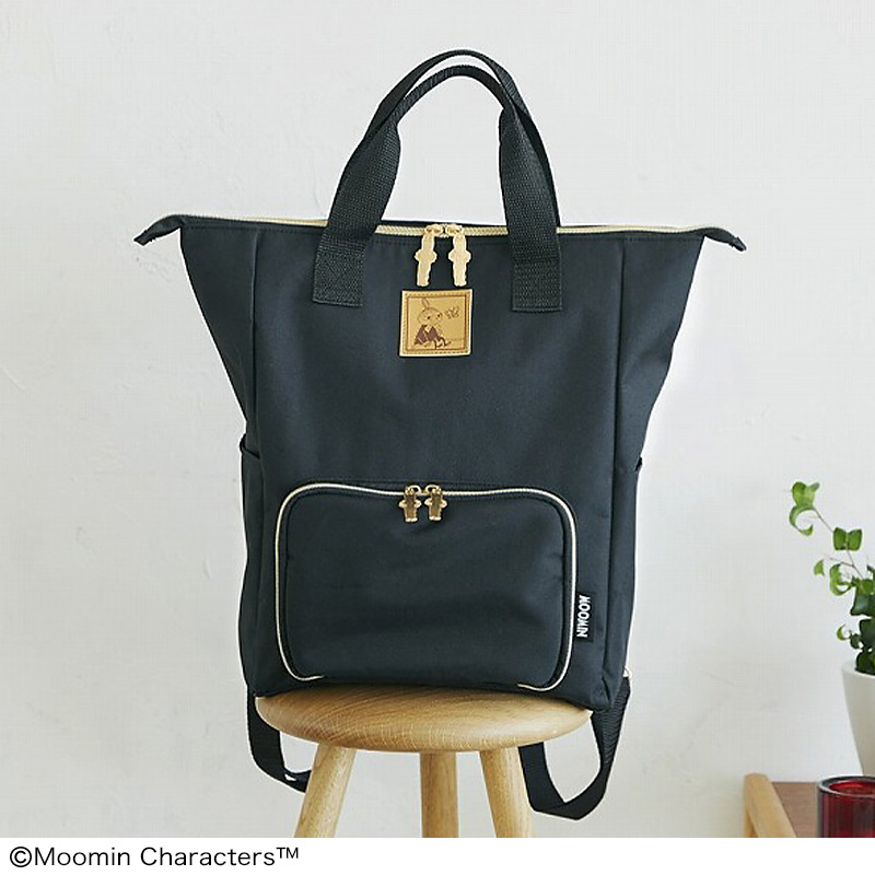 フロントに便利すぎる多機能ポケットが付いた2WAYトートリュック。リュックのショルダーストラップを取り外して背面ポケットに収納すれば、トートとしても使用できる2WAY仕様です。フロントポケットは大きく開き、多数の仕切り・ポケットを備えていて整理力抜群。シンプルで使いやすいブラックベースに、リトルミイのイラスト入りレザー調タグと、ニョロニョロの形のオリジナルジップトップがおしゃれな大人に似合うデザインです。リュックとして、トートとして、日常のさまざまなシーンで大活躍間違いなしのアイテムです!