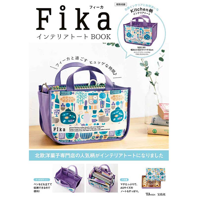 特別付録は可愛いと話題のFikaのパッケージの中でも特に人気が高い「kitchen柄」をあしらったインテリアトート。本物のパッケージみたいなFikaロゴのはいったリボンもデザインされています。