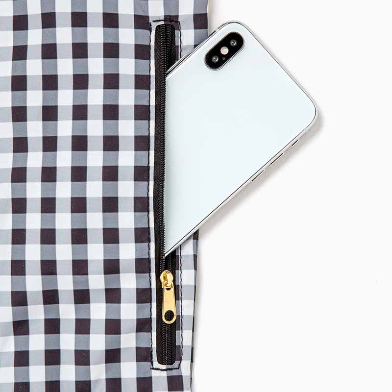 ○エコバッグには、スマホなどが入る便利なポケット付き