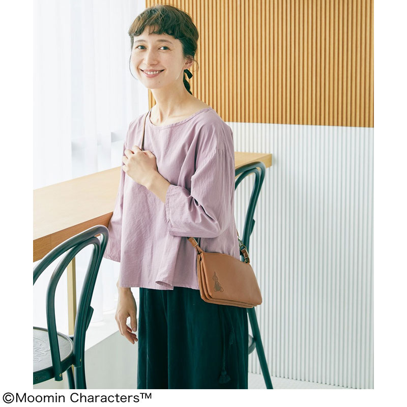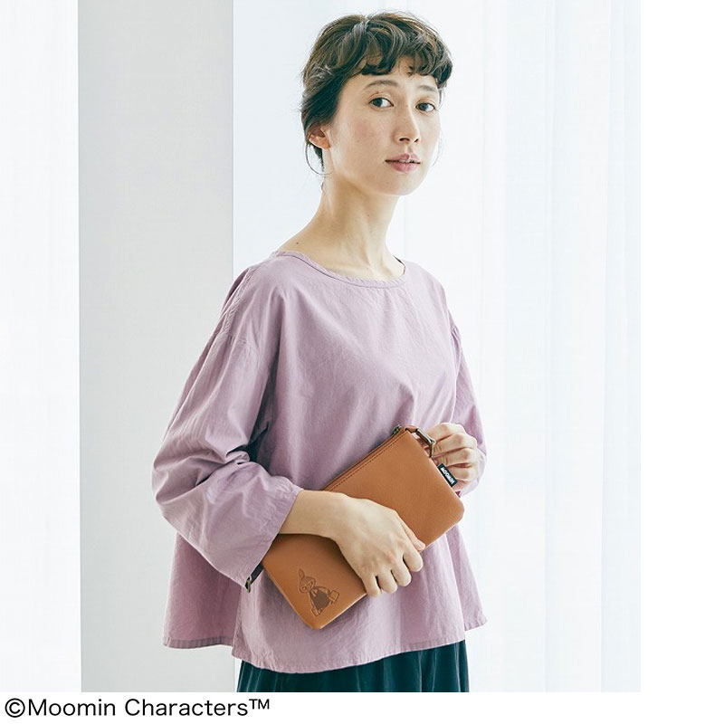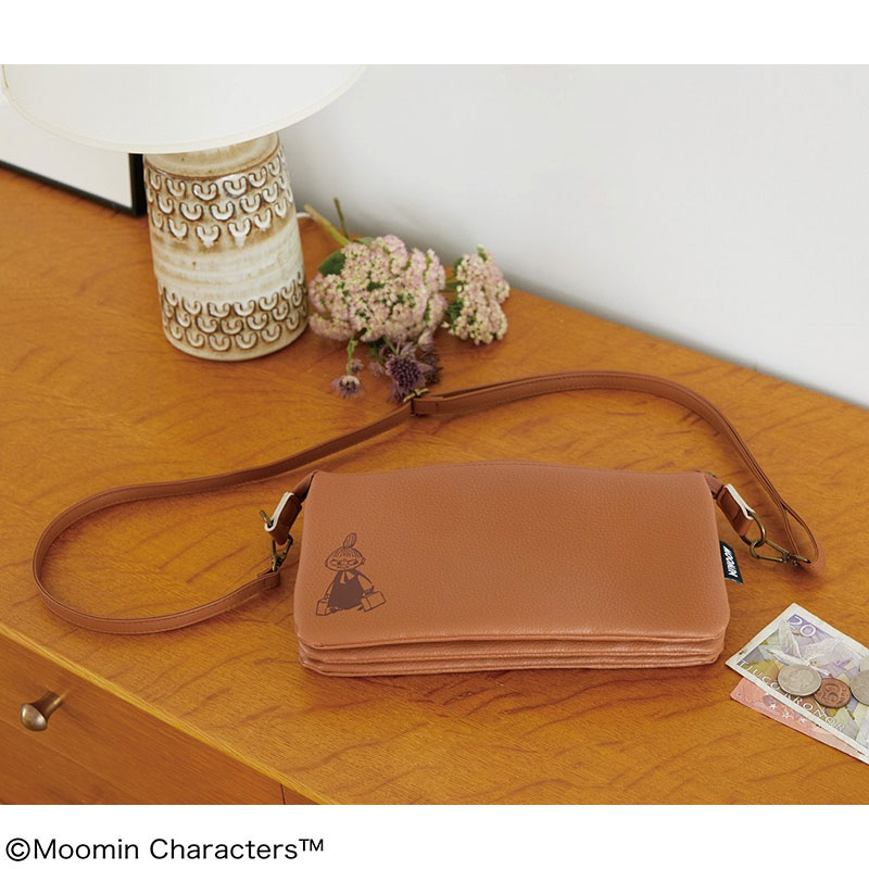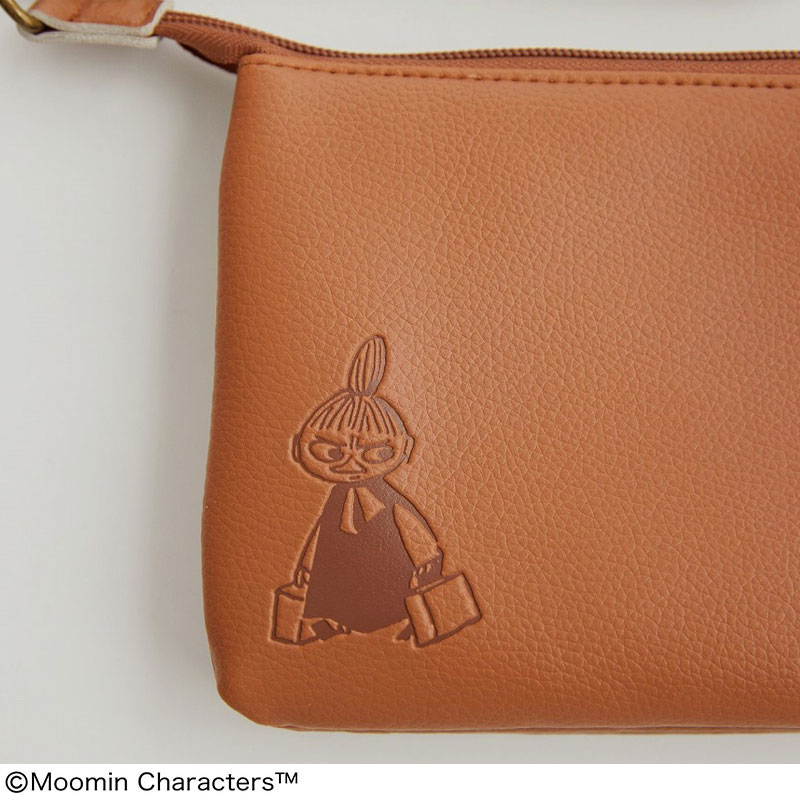 レザー調の上質な雰囲気と、ワンポイントで型押しされたリトルミイが、大人かわいいおしゃれな印象を与えます。カジュアルなスタイルにも、きれいめのスタイルにも合うお財布ショルダーで、コーデをランクアップして。