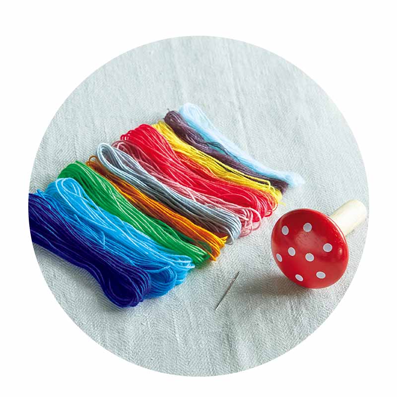 糸のカラーバリエーションは12色! 太めの糸を8種、細めの糸を4種揃えています。