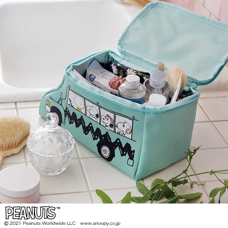スヌーピーの兄弟が乗車する、さわやかなミントカラーのバス形ポーチの登場です!