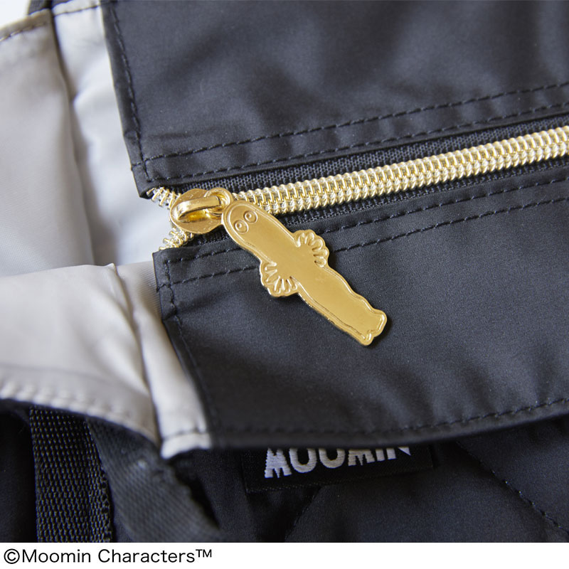 シックで合わせやすいブラックに、リトルミイの織りタグとニョロニョロの引き手がおしゃれなポイントに!