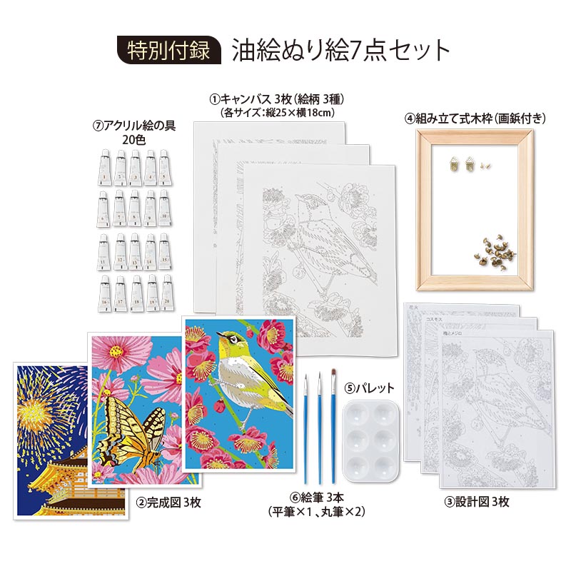 超豪華な7点セットの付録つき! 描いた絵は、部屋に飾って楽しめます。