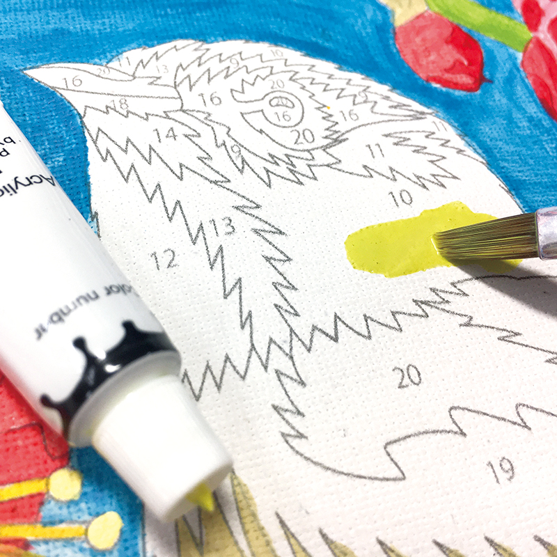 キャンバス上の数字と絵の具の数字を合わせてぬっていくだけで、