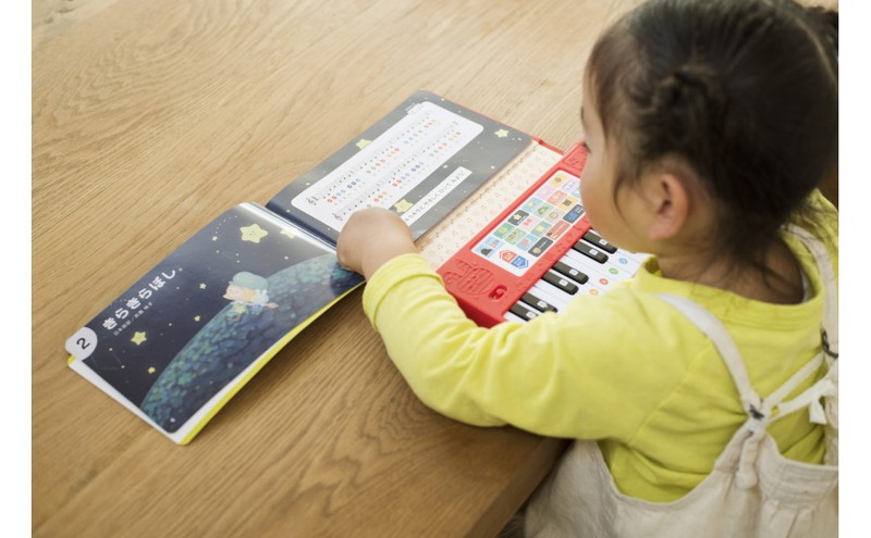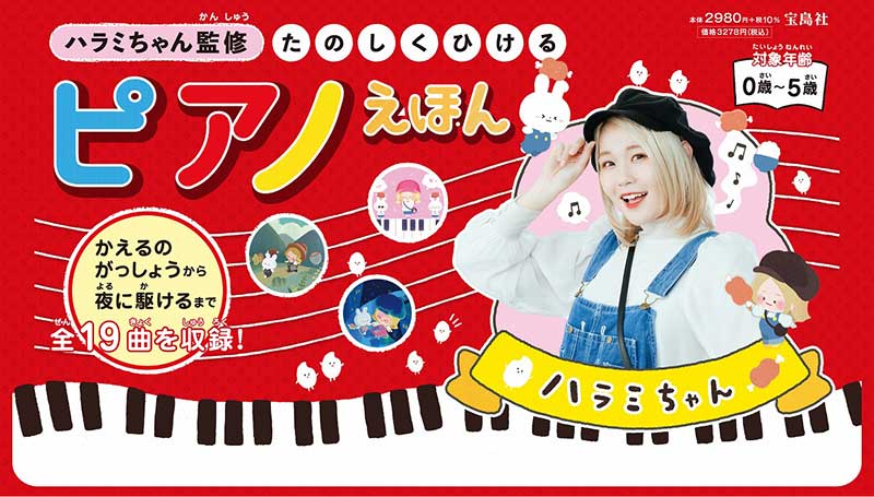 絵本ページでは、楽曲をもとにしたイラストを掲載。かわいらしいハラミちゃんとうさみちゃんが童謡の世界でたのしくあそぶ姿を見ながら、お子様とたのしくピアノを学ぶことができます。
