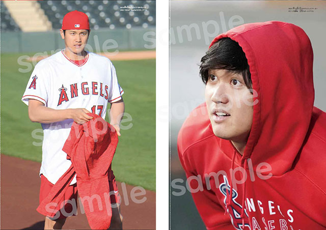 ポスターは「打者の大谷」と「投手の大谷」が両面に収録されています。ピンナップは、トータル16種類の両面8枚の16ページ構成。