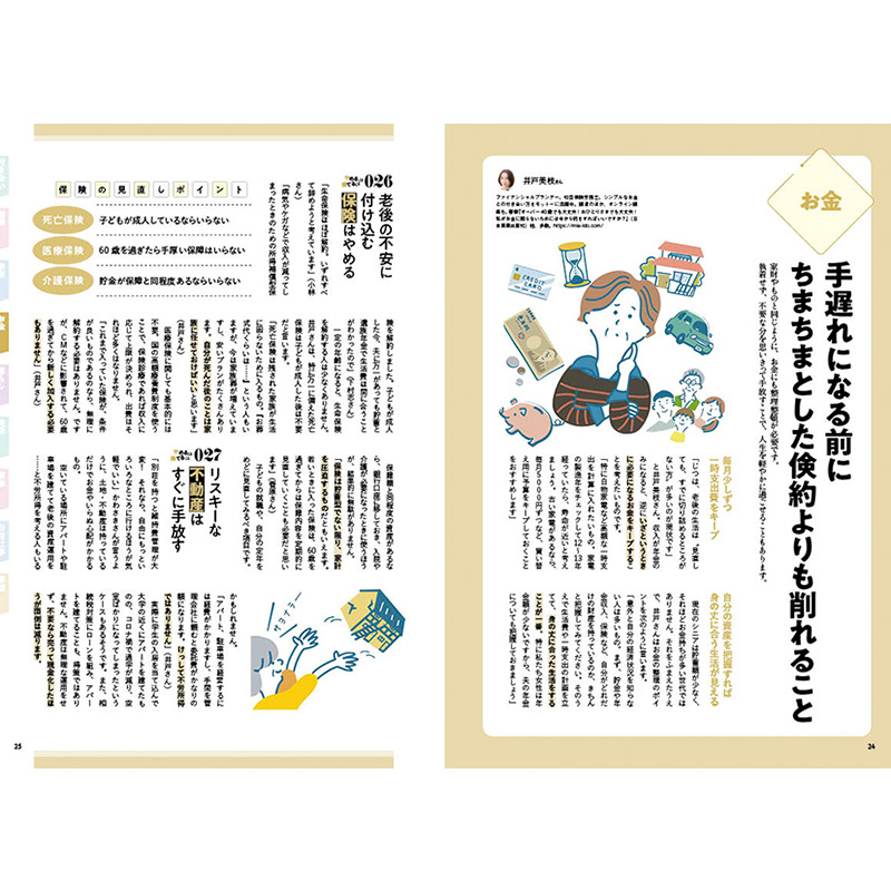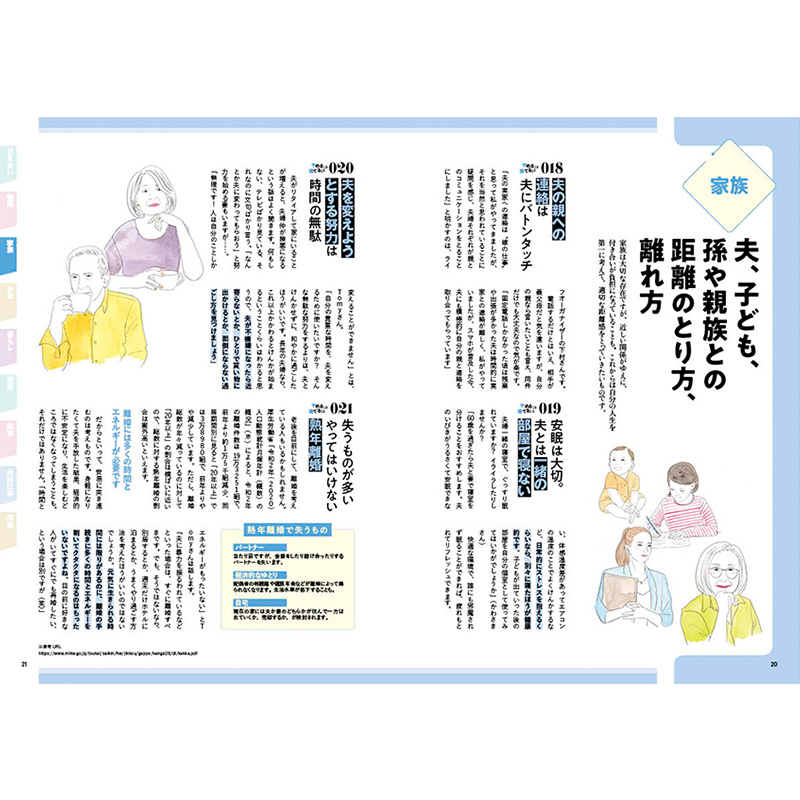 兄弟、子ども、友人との「距離の取り方」「縁の切り方」や、「リフォーム」「引っ越し」はしない、余計な「人間ドック」「サプリ」もやめる、きれいさっぱり見栄を捨てる方法などを紹介。