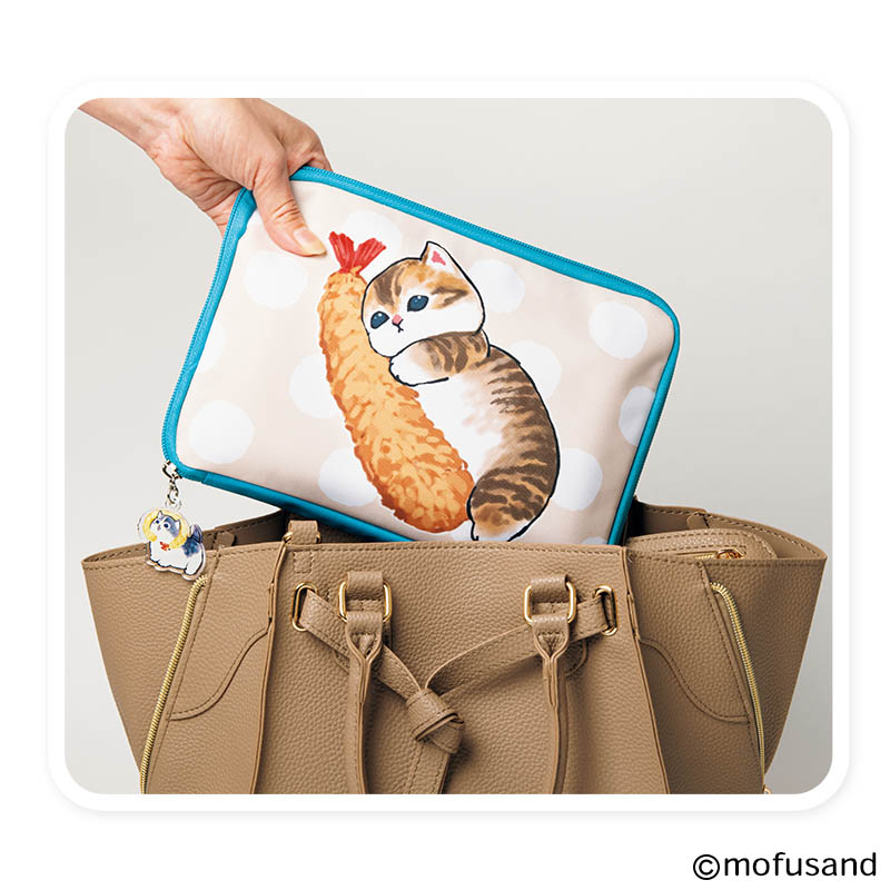 特別付録は、えびふらいが好きすぎるにゃんたちのイラストがあしらわれた「じゃばらポーチ」。