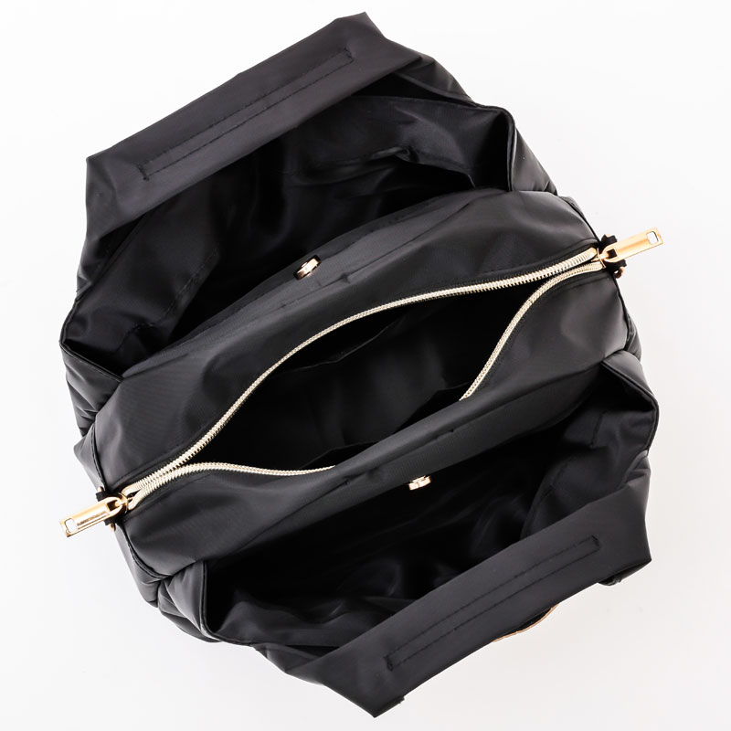 高級感のある高密度のナイロン風素材を使い、軽くて収納力たっぷりのバッグに仕上げました。