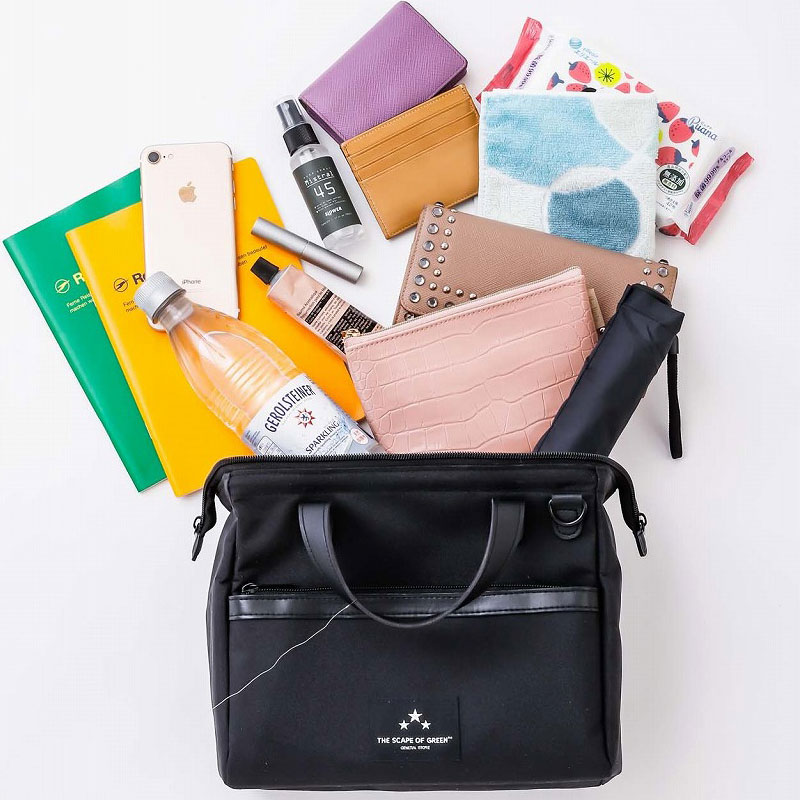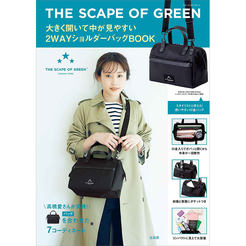 人気スタイリストとコラボし、今欲しいバッグをリリースするブランド「THE SCAPE OF GREEN(スケープ オブ グリーン)」のブランドブック第2弾。今回は雑誌『InRed』『GLOW』などでも活躍する永岡美夏さんと口金入りのショルダーバッグを作りました。容量たっぷりながら、口金入りでガバッと開けられるので、中が見やすく物の出し入れがしやすいバッグです。シックな黒のデザインで、カジュアルから大人っぽいコーデまで幅広い着こなしにマッチします。表紙は高橋愛さん。本誌スペシャルアイテムのバッグをさまざまなコーデに合わせてくれています。