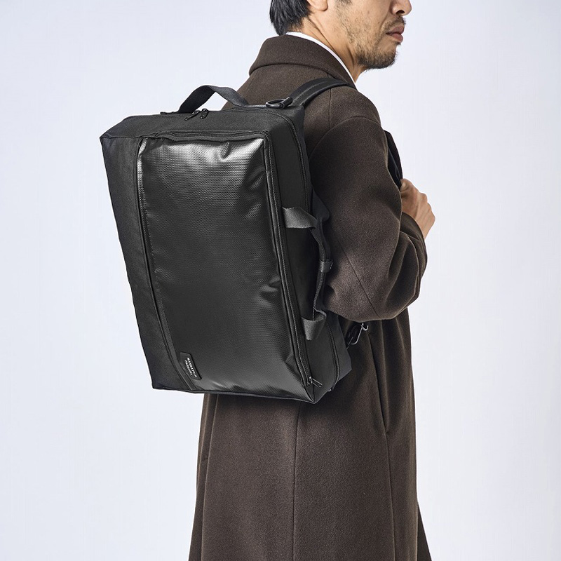 手持ち(ブリーフ)、肩がけ(ショルダー)、背負い(リュック)とシーンに合わせて3通りの使い方ができる万能バッグです。