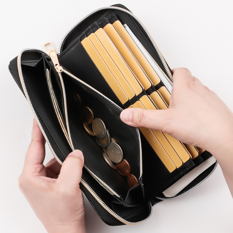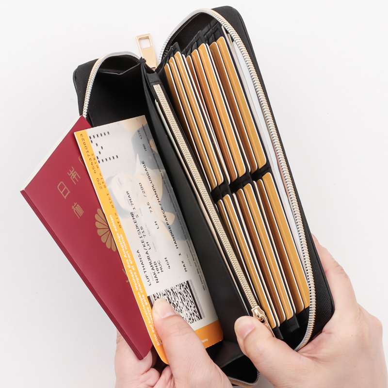 マチつきのコインケースや5つの横長ポケットなど使いやすさにもこだわりました。