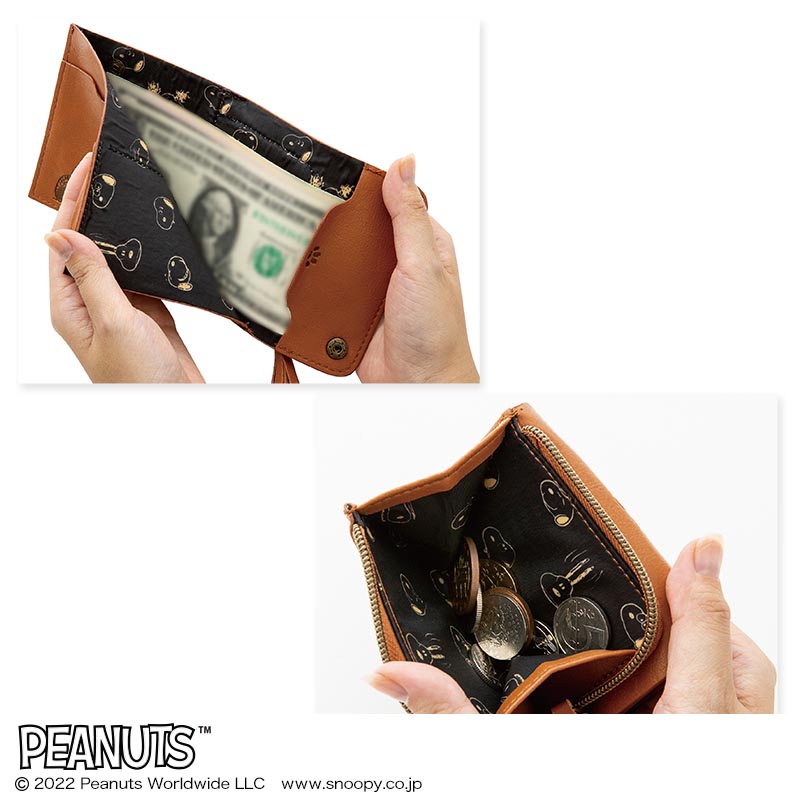 チャーリー・ブラウンの顔になっているスナップボタンや、お札入れの裏地など、スヌーピーファンにはたまらない細かい部分にも注目!