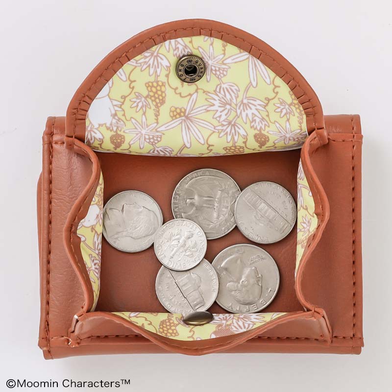 お財布を開くたびに見える裏地は、それぞれ色違いの、ムーミンと仲間たちの華やかな総柄デザイン。