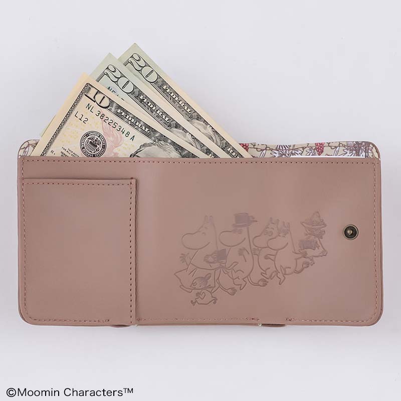 お財布の内側にも型押し付きで、「BROWN」ではニョロニョロ、「PINK BEIGE」ではムーミン谷の仲間たちがお出迎えしてくれます。