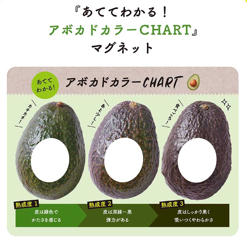 特別付録として、食べごろの目安がわかる『あててわかる! アボカドカラーCHART』マグネットが付いています。