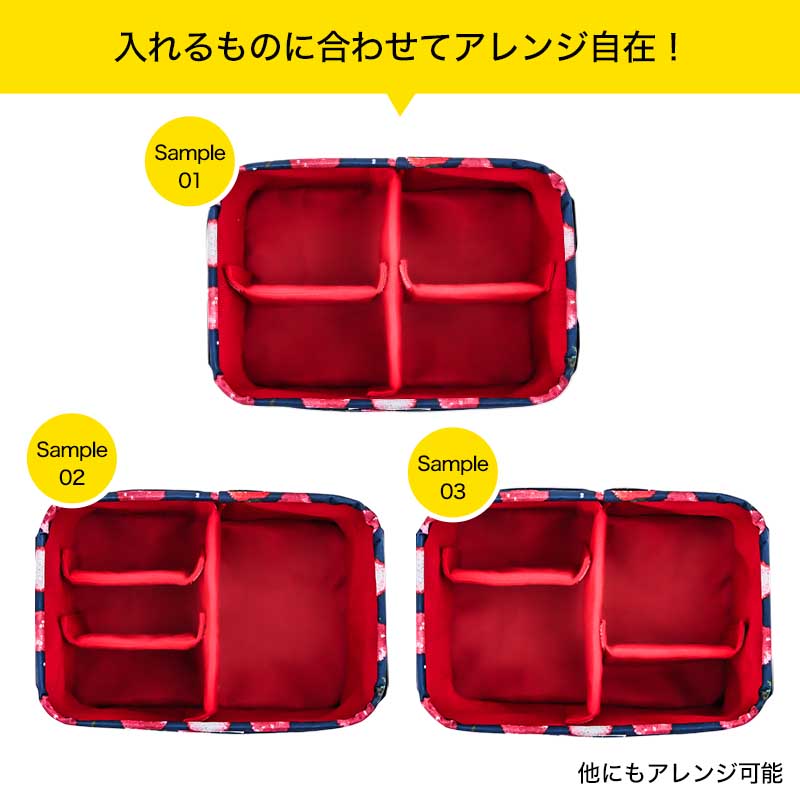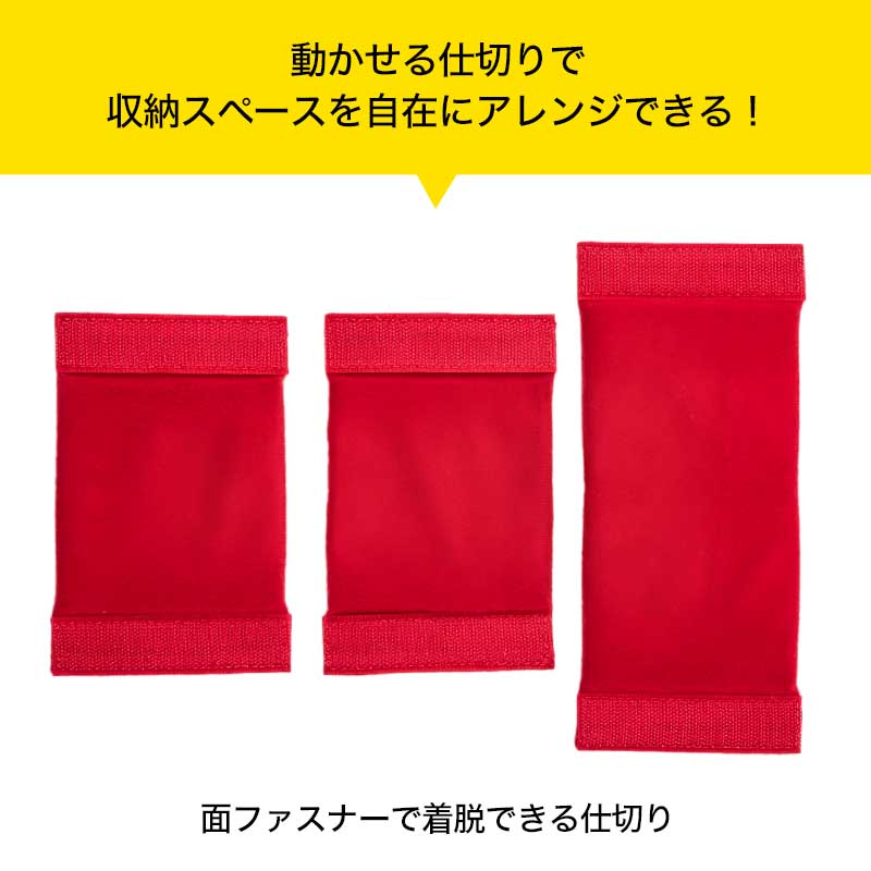 4つの外ポケットと、長短合わせて3つの動かせる仕切りで、大小さまざまなアイテムを自在に収納できる優れもの。
