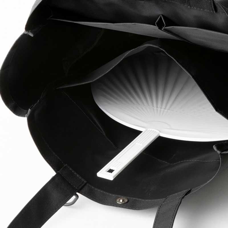 うちわをビニール袋ごと入れられる内ポケット。メイン収納と分けて使えるので、パンフレットやチラシを持ち帰るのにも役立ちます。