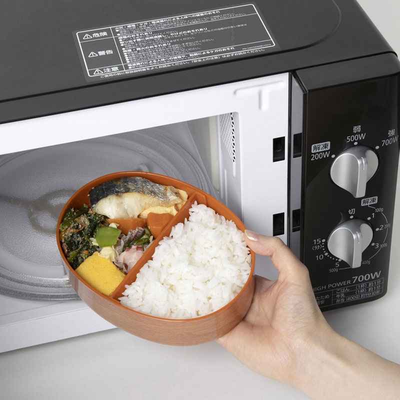 フタを外せば電子レンジで使用可能。いつでも温かいお弁当が食べられます。