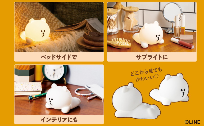 ころんと寝転ぶブラウンがかわいい! ふわっとやさしく光るルームライトです。