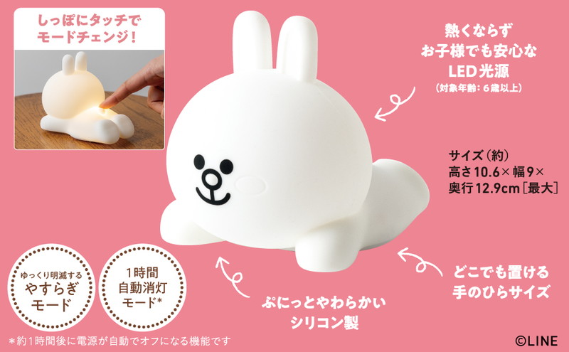 ころんと寝転ぶコニーがかわいい! ふわっとやさしく光るルームライトです。