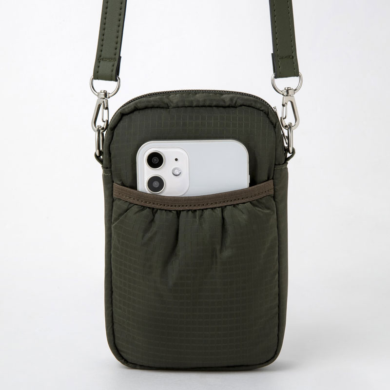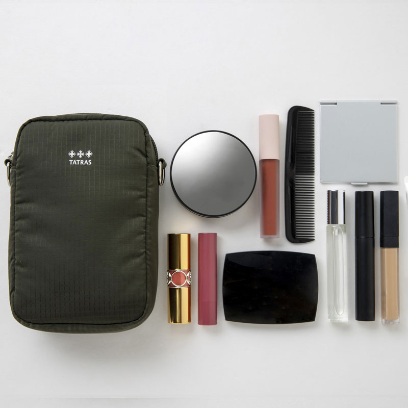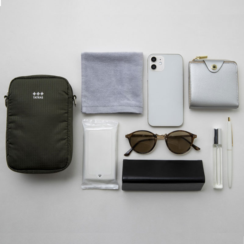 TATRASのダウンジャケットをイメージした柔らかいクッション素材入りのリップストップ生地でできていて、外ポケットが1つ、内ポケットが2つとものを分けてしまうことが可能です。スマホやカードケース、ハンカチなどちょっとした貴重品をまとめて入れられます。