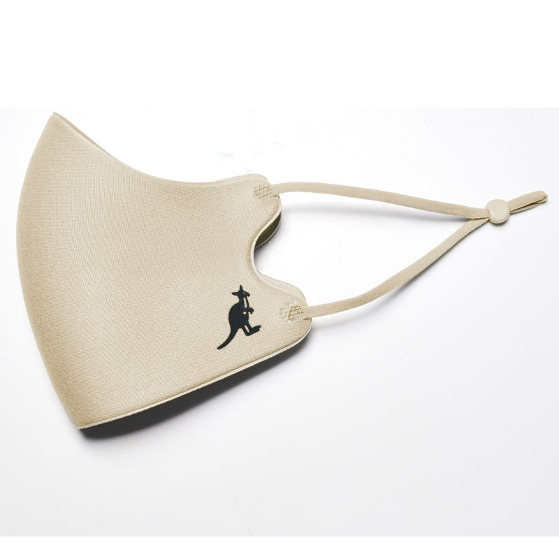 マスクのサイドには、カンゴールのシンボルロゴとレタードロゴをさりげなくプリント。