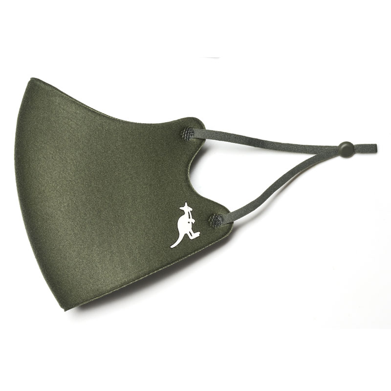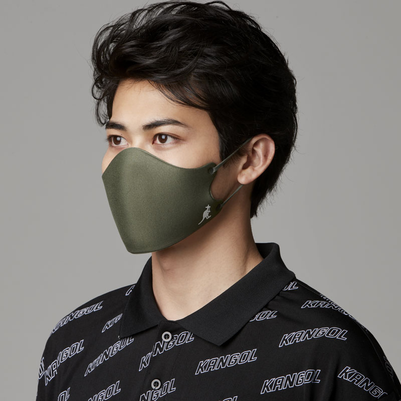 マスクのサイドには、カンゴールのシンボルロゴとレタードロゴをさりげなくプリント。