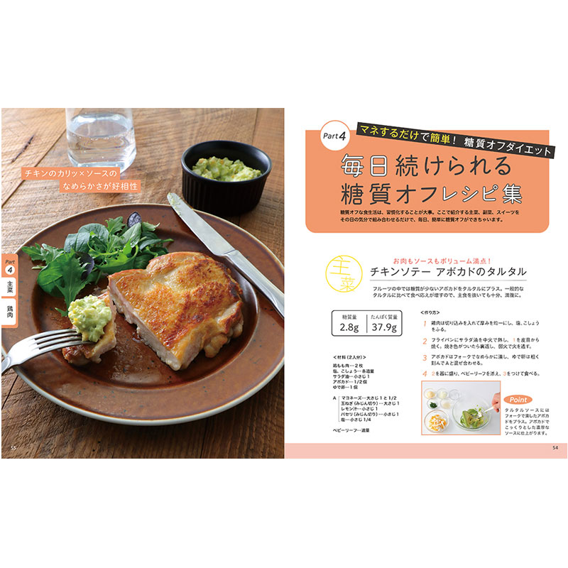 もはやブームを超えて定番になりつつある糖質オフレシピ。本誌は、ついつい豆腐・鶏肉など定番食材を使ったマンネリな献立になりがちな人や、日々の糖質量の計算が面倒くさい人に向けたレシピ本です。主菜、副菜、汁物のバリエーションや、これが糖質オフなの!?という一品料理まで掲載し、糖質オフダイエットがはじめての人にも、挫折した人にもやさしい一冊です。巻頭では糖尿病専門医の牧田善二先生による解説も!