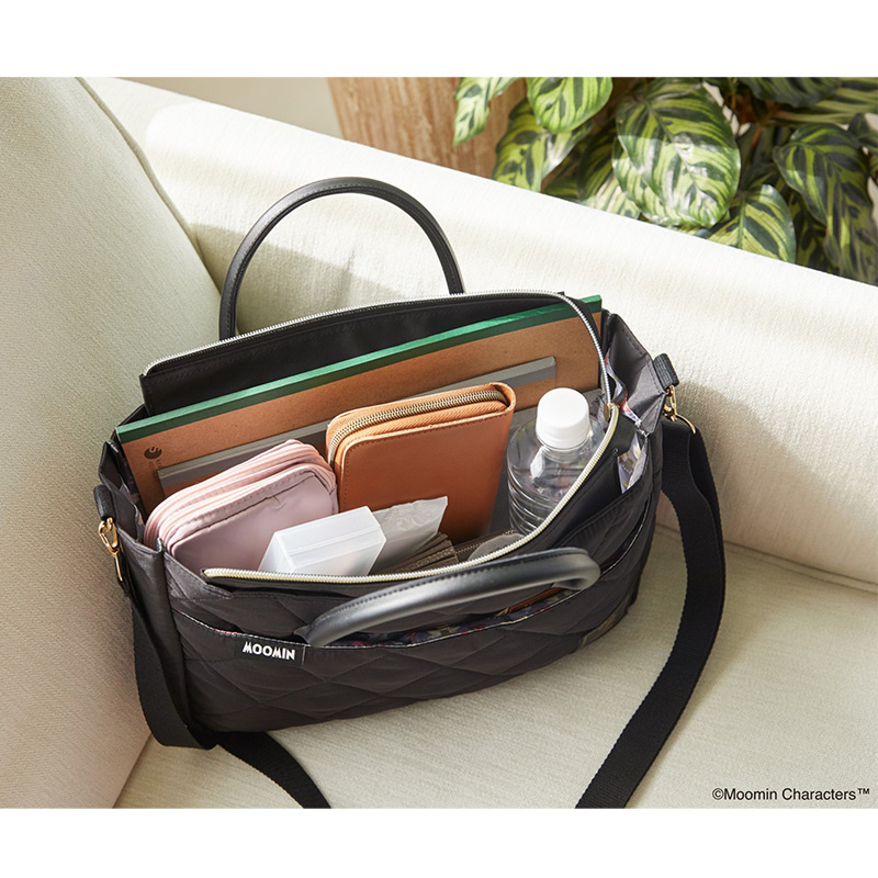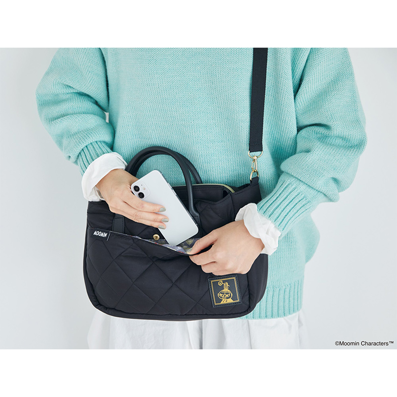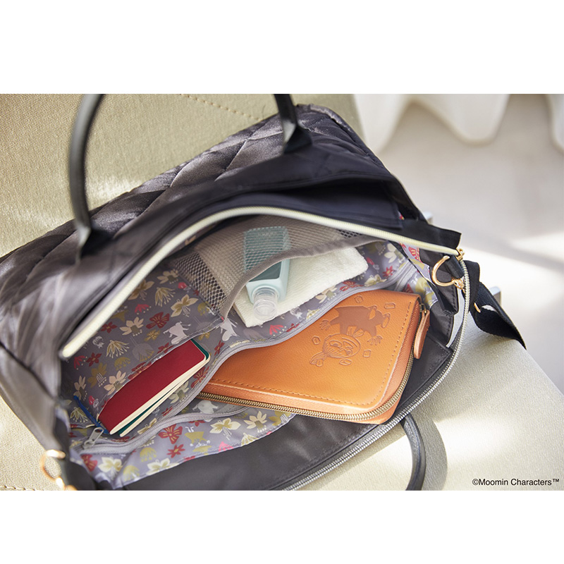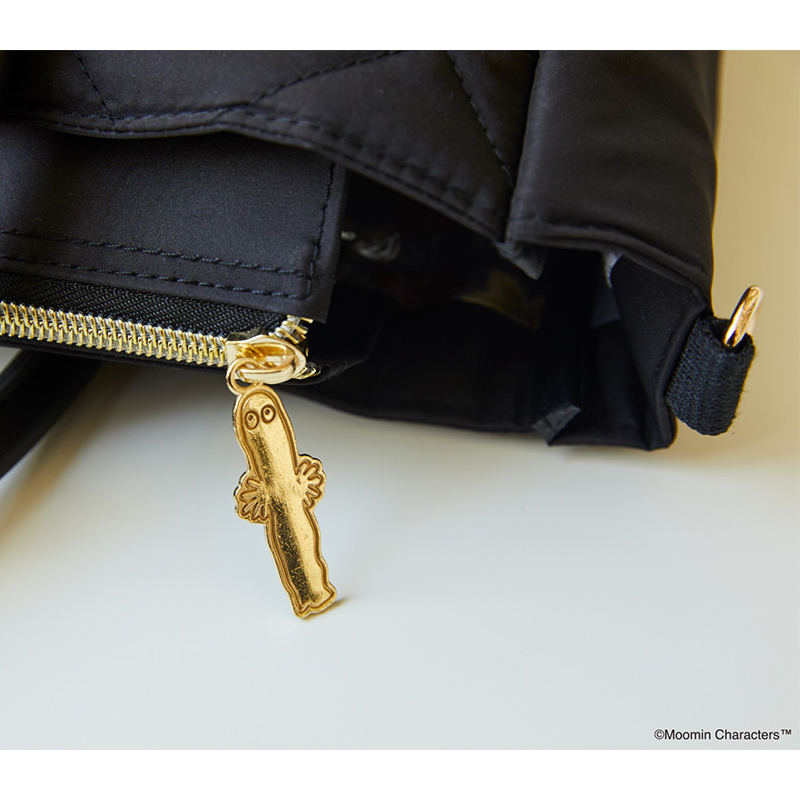 アクセントになるブラック×ゴールドのリトルミイのリッチなレザー調のタグと、同じくレザー調のハンドルが、大人に似合う高級感を演出。