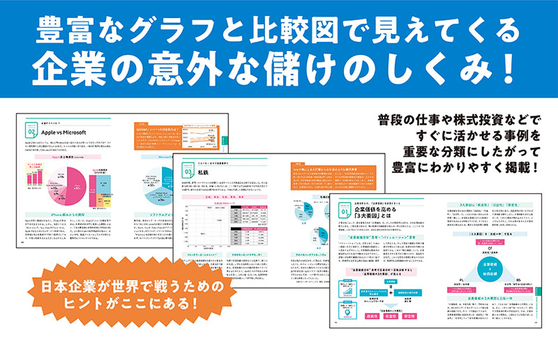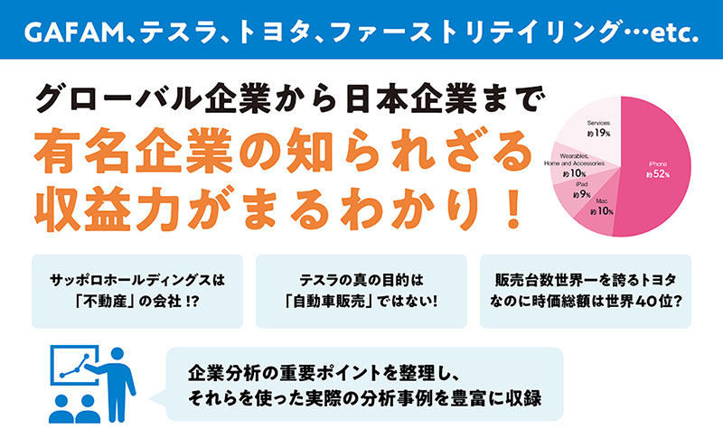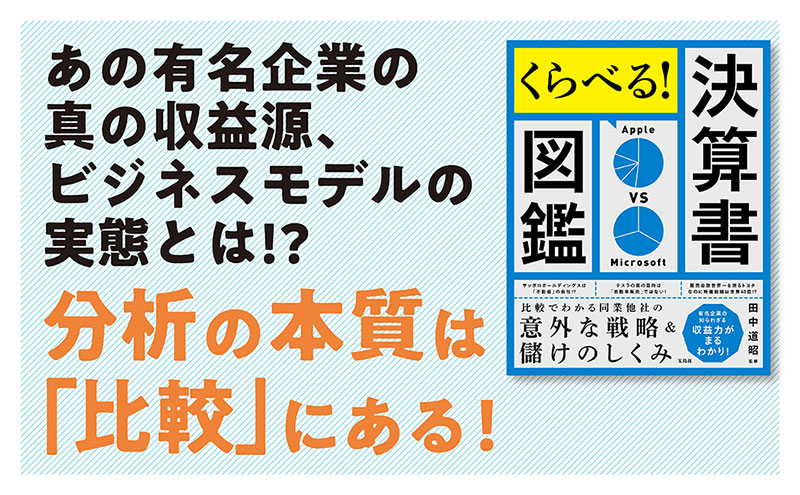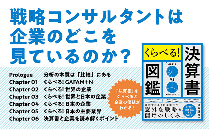 GAFAMやBATHから、トヨタ、ソフトバンクまで、国内外の世界的優良企業の決算書をグラフで比較。有名企業のあまり知られていない収益構造をグラフ化して紹介します。本業以外に不動産など意外な収益源があり安定した会社や、広告への依存度が高く安定していない会社など、決算書のデータをグラフ化して比べてみるとひと目でわかります。