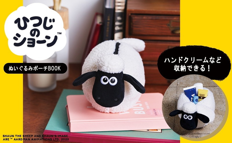 大人気クレイアニメーション「ひつじのショーン」の、もこもこぬいぐるみポーチ付きブックが登場!