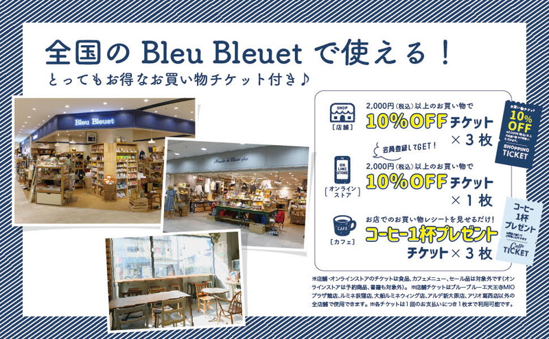 さらに本誌限定特典で、全国のBleu Bleuet、オンラインショップでお使いいただけるとってもお得なお買い物チケット付き!