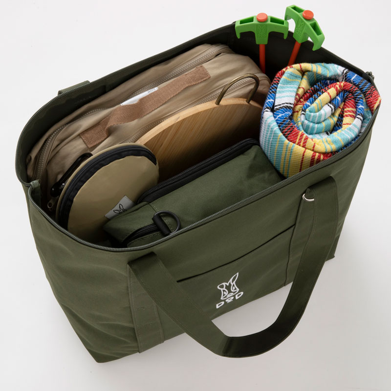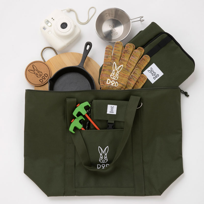 DODブランドブック史上最大サイズのトートバッグは、アウトドアだけでなくピクニックや旅行など、荷物が多くなりがちなシーンで大活躍。
