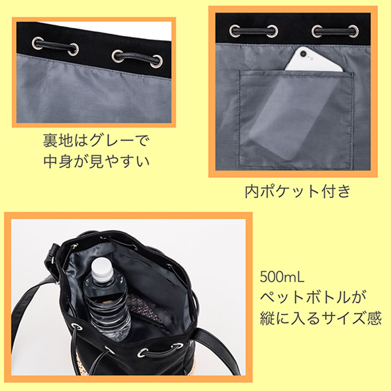長財布や500mLペットボトルが入るサイズで嬉しい内ポケット付き。