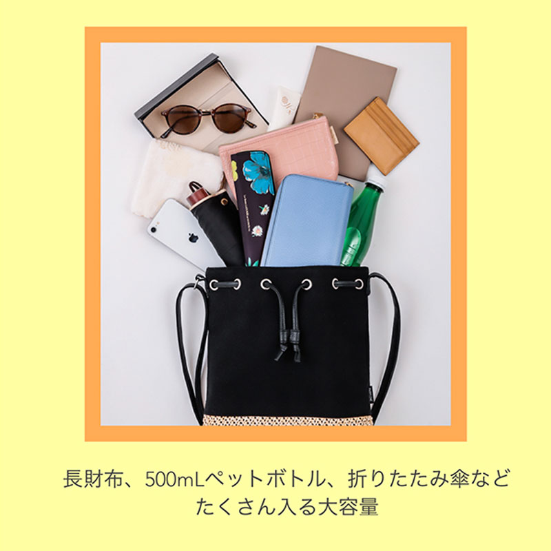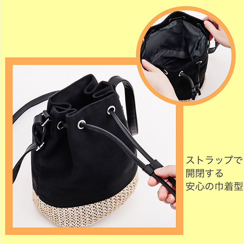 スペシャルアイテムは、春夏らしいかご風素材と、キャンバス風素材でデザインした巾着型バッグ。