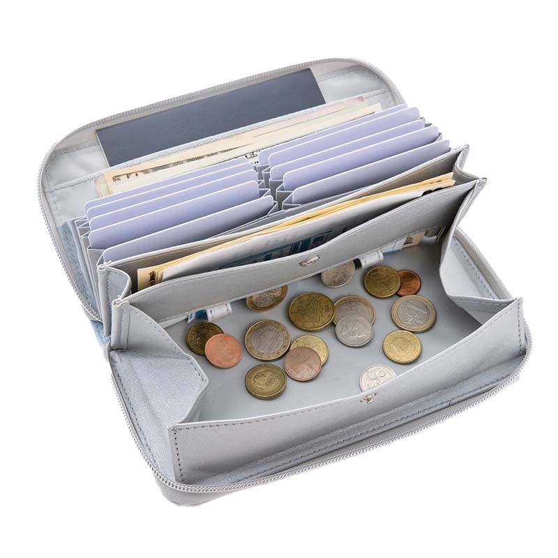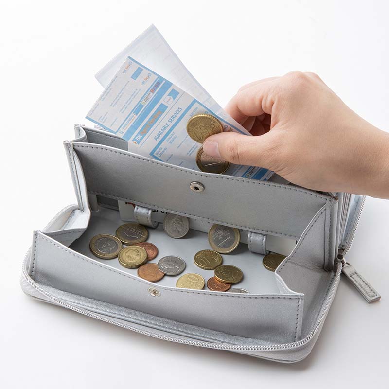 レシートと紙幣を入れるポケットと小銭入れがつながっているので、一緒に入れると自動で分かれます。レジ前で慌てることなく、スムーズにお会計できて便利! 整理整頓しやすくて、たっぷり収納できる長財布です。