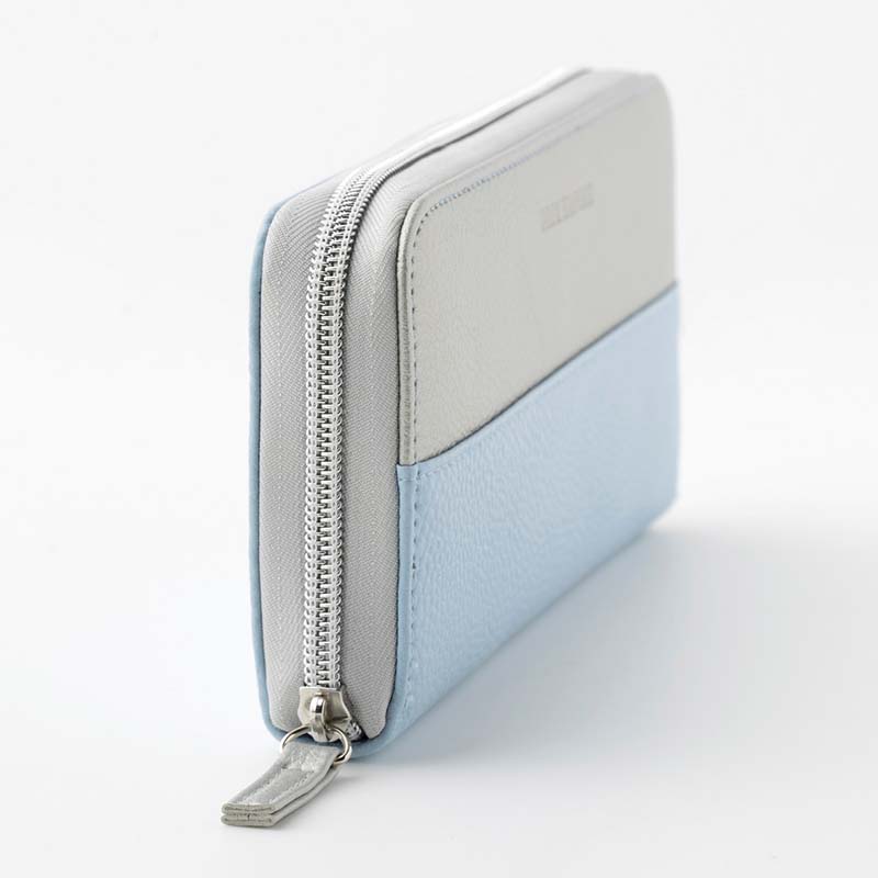 シックなブラックのレザー調生地にゴールドのロゴで高級感のあるBLACKと、ライトブルーとシルバーの爽やかなBICOLORの選べる2色展開です。