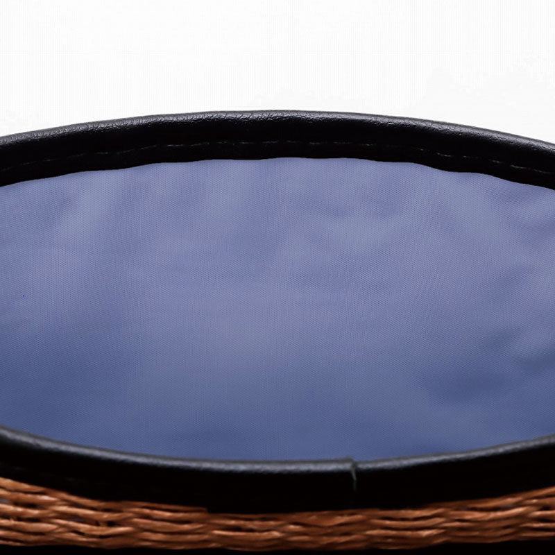 レザー調素材との組み合わせで、シックで都会的な印象で持てる大人仕様のバスケットバッグになっています。