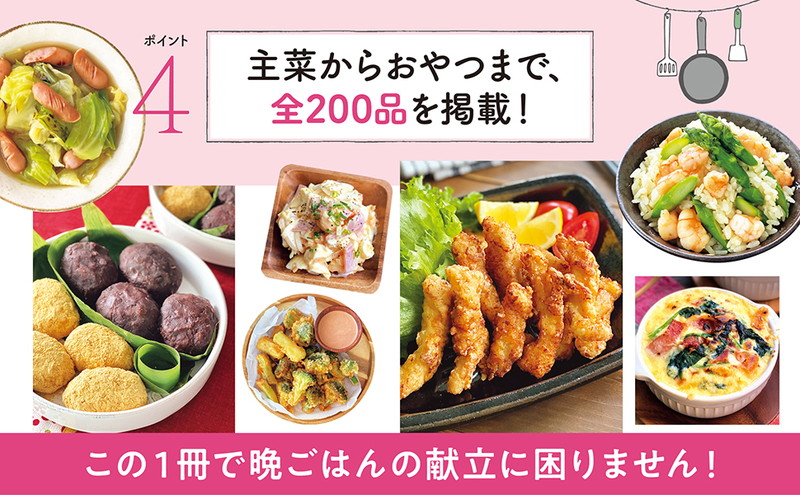 肉おかずから野菜おかず、副菜まで、たっぷり200品を掲載。