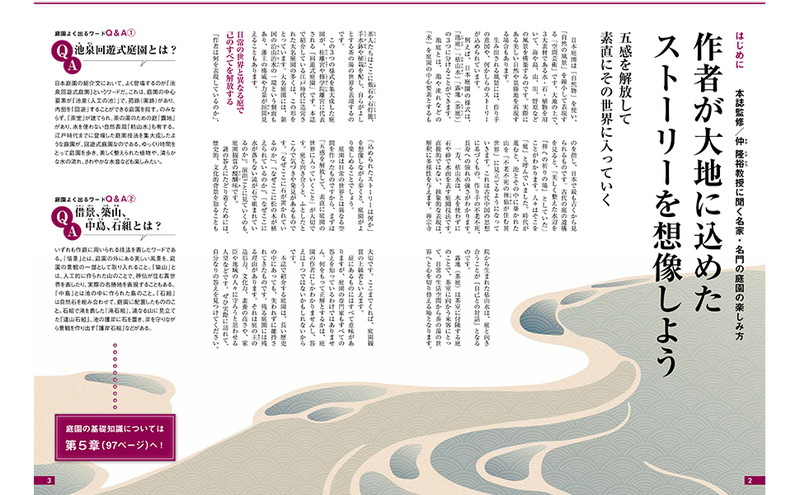 本誌では、美しさを楽しむだけでは終わらない、歴史と技と“主(あるじ)の素養”に圧倒される名家・名門の庭園を紹介。「皇室ゆかりの庭園」「政界・財界の名門の庭園」「殊勲・新華族の庭園」「江戸時代の大名庭園」など日本全国至高の89庭を、形式・構成要素・用語の解説とともに紹介します。日本庭園から洋風の風景式庭園、整形式庭園まで、美しき自然風景を堪能し、ぜひ作者が大地に込めたストーリーを想像してください。