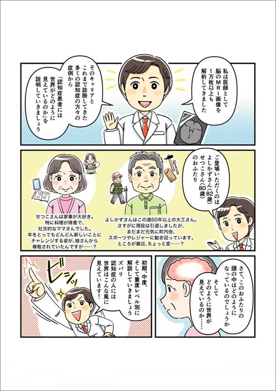 そこで本誌では、日常生活のなかでよくある認知症患者の言動や行動を「認知機能が低下している人からの視点」でマンガ化。そして、そのひとつひとつに対して、1万人以上の脳を診断し、数多くの認知症患者にも接してきた脳内科医・加藤俊徳先生が対応策を解説します。