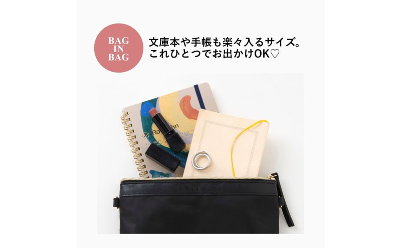 文庫本や手帳、コスメなど細々したものをすっきり収納できるサイズ。