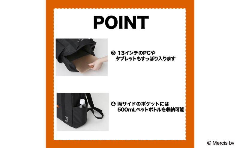 フロントからひょっこりと顔を出すミッフィーがさりげなくかわいいバックパックができました。