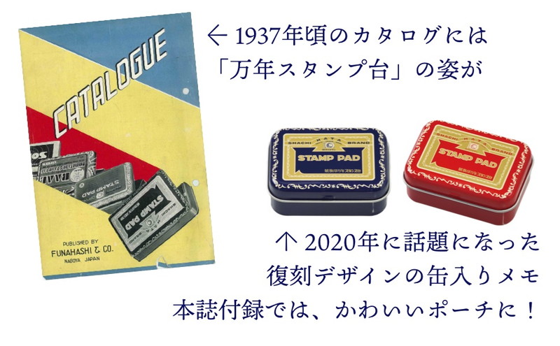2020年のシヤチハタの創業95周年記念アイテムとして「万年スタンプ台」があしらわれた缶入りメモが発売され、レトロでクラシックなデザインが文具女子のハートを射抜きました。