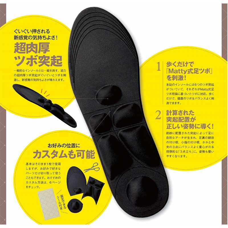 誌面では、Matty先生による足ツボのお話や、インソールの特徴&使い方をご紹介。