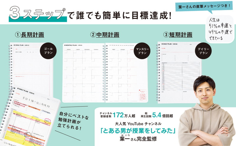大変な受験や学校の勉強も、葉一さんのスタディプランナーがあれば乗り切れるはず!